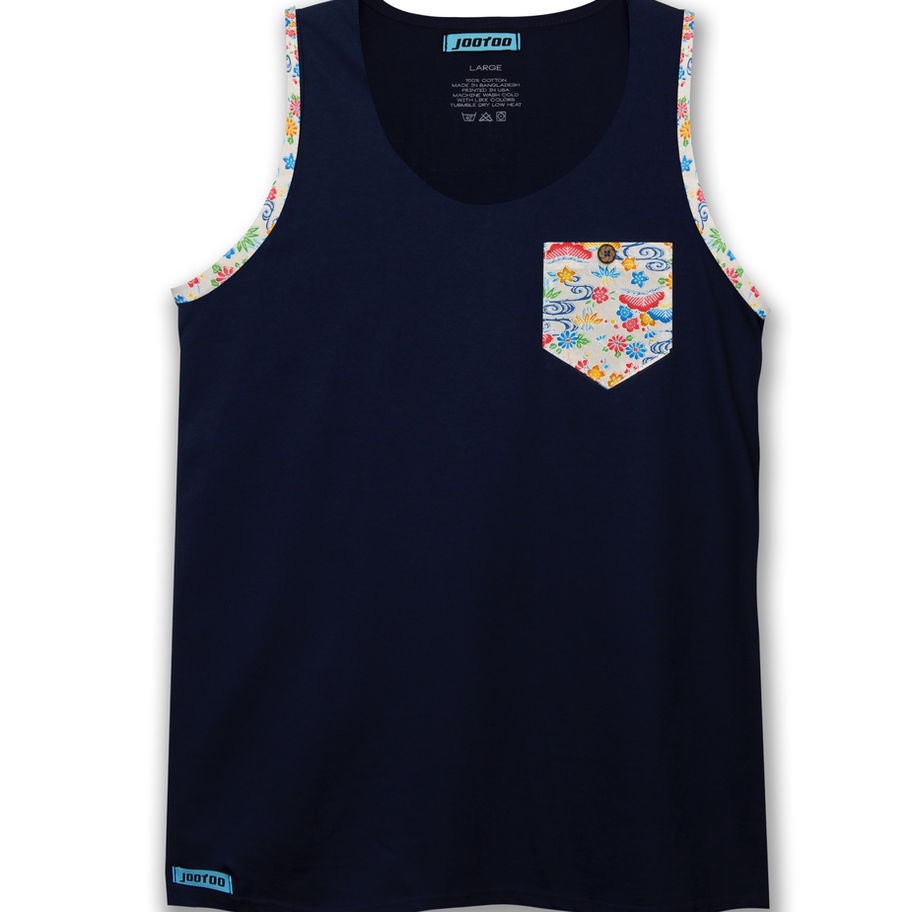 Experience the perfect blend of Okinawan heritage and SoCal ease with JooToo Clothing’s Men's Navy Tank Top featuring a distinctive floral pocket. Crafted for comfort and style, this tank top embodies the relaxed yet vibrant spirit of our culture-blended fashion brand. Designed to elevate your casual wardrobe, it offers a versatile look that transitions seamlessly from beach days to city streets. Embrace unique craftsmanship and quality materials that reflect JooToo Clothing’s commitment to celebrating diverse influences. This tank top is a must-have for those who appreciate authentic style inspired by island tradition and coastal cool.